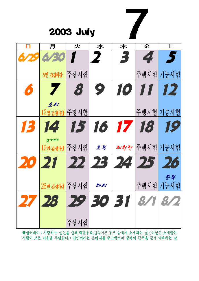2003년 07월 검정 일정